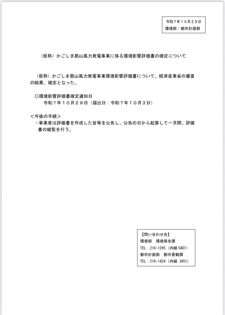 かごしま郡山風力発電事業にかかる環境影響評価 2025/10/30 【お知らせ】 八重山一帯で進められている、外資系事業者による大型風力発電(風車8基)計画の環境アセス最終文書が公開されました。 本日、鹿児島市議会の「環境委員会」と「建設委員会」で、この問題に関わる陳情審査が行われます。(いずれも午前10時から開会) 2021年から「八重山このまま」「再エネはすでに自然がないところで」という思いで活動してきた私たちにとって、大きな節目の一日です。 どうぞ傍聴にお越しください。
